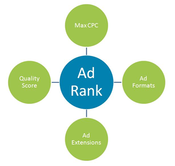 The image below displays the top factors affecting the ad rank. These are maximum cost per click, the ad quality score, the ad formats and the ad extensions. All these factors along with several other factors affect the ad rank of your individual ads present in the ad campaigns.