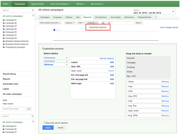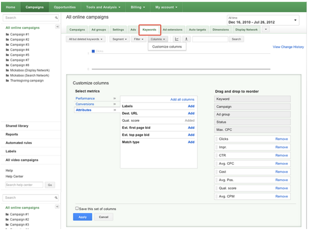 1-   Click on the campaigns tab after logging in to your adwords account and then move to the keywords tab.