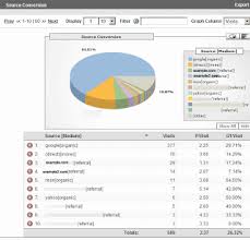 Sebagai contoh, di sini adalah konversi sumber. Perhatikan bahwa persentase berdasarkan pada Pengunjung, Tayangan Laman tidak, sehingga mereka tidak dibandingkan dengan CTR.